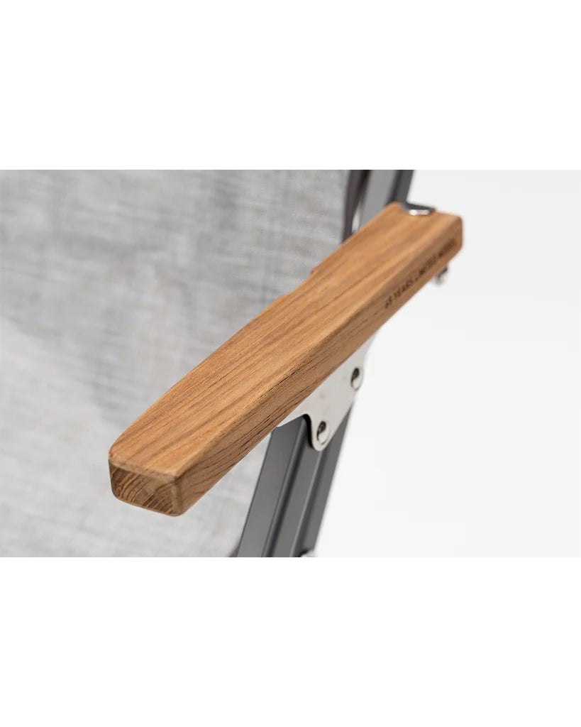 Designed in Japan, the 65th Anniversary Luxury Low Beach Chair has natural wood armrests and a canvas seat. The chair is stylish enough for the home or patio, but sturdy enough to withstand the rigors of camp. The Luxury Low Beach Chair features a mesh storage pocket, high-quality wood armrests with a laser-engraved 65th Anniversary logo, and a back that is 7 inches lower than the Low Beach Chair. The Luxury Beach Chair folds into a compact case for efficient storage.