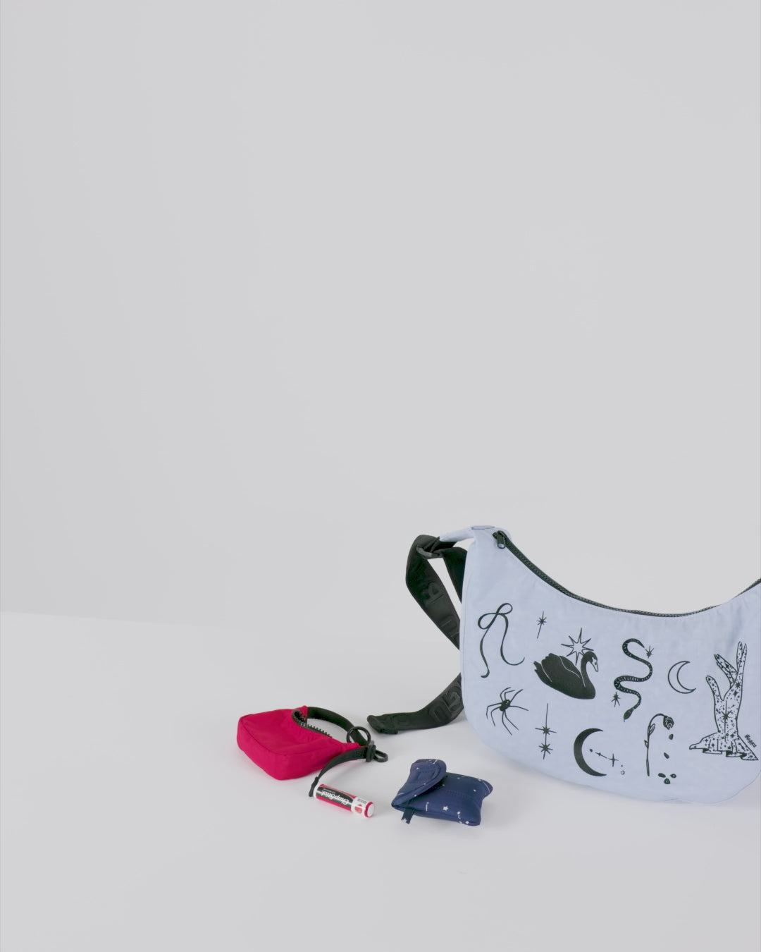 Baggu's Crescent Bag charm decorates your larger bag while keeping small items like credit cards or lip balm close at hand.