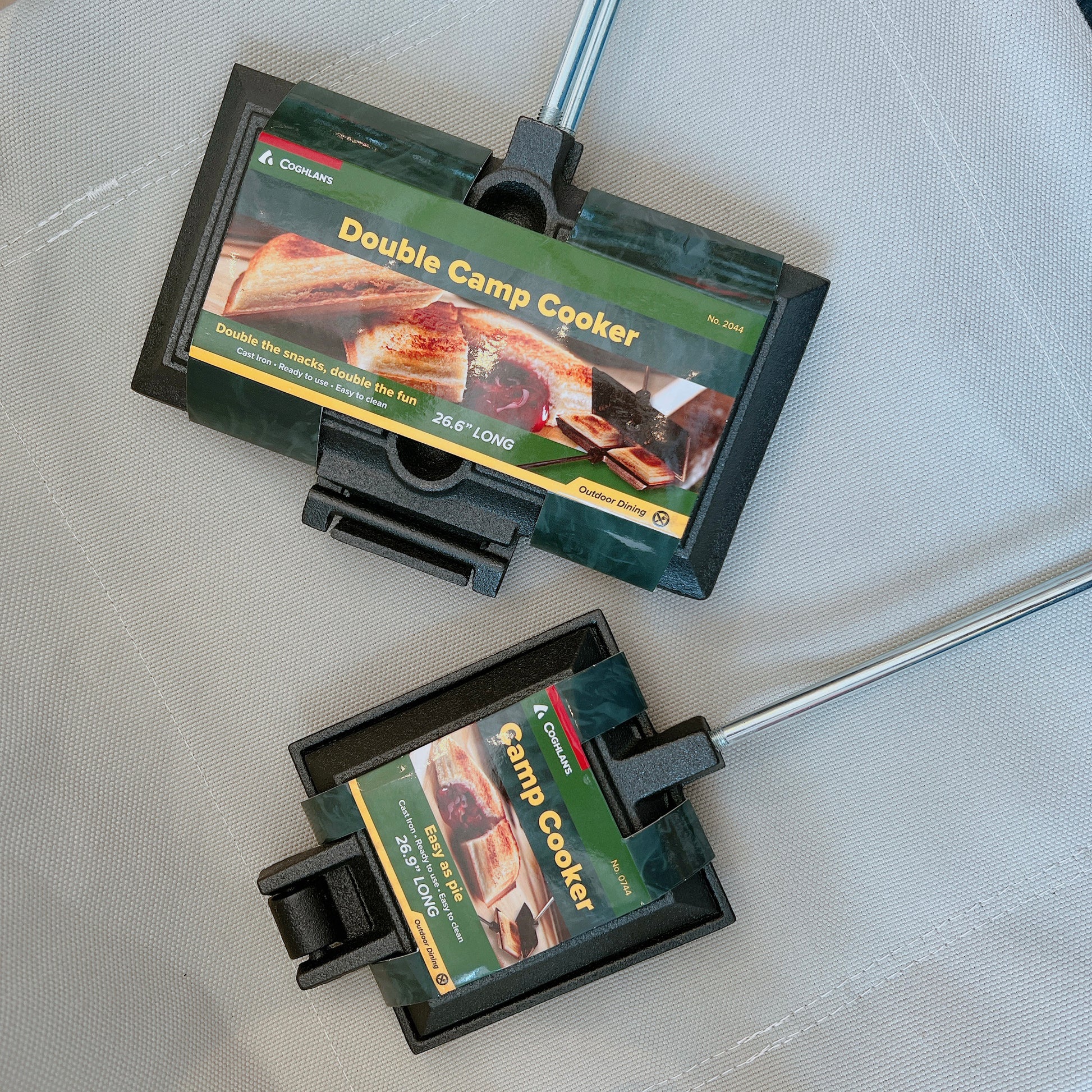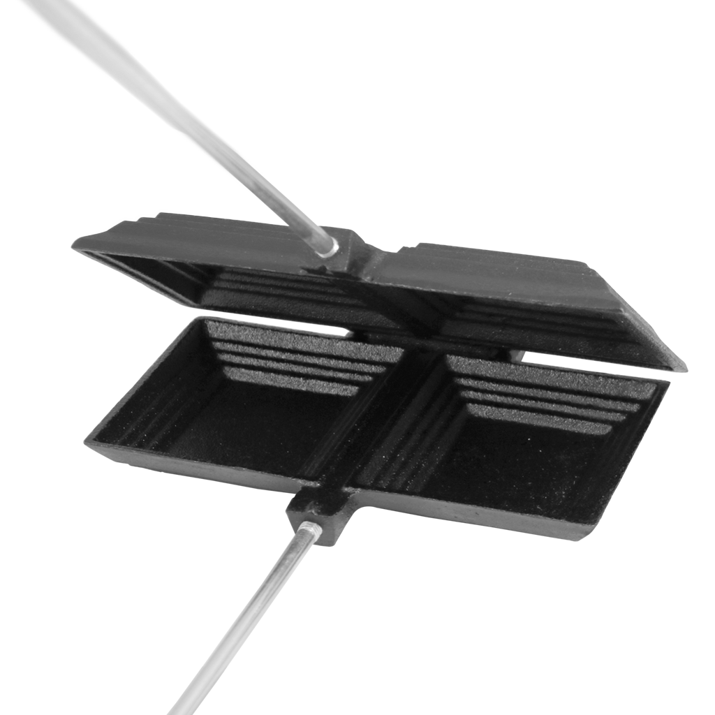 Cook twice as many of your favorite campfire treats in the Double Cast Iron Camp Cooker. Made from durable cast iron, this Double Cast Iron Camp Cooker from Coghlan's offers a convenient way to toast sandwiches, grill meats, and cook delicious desserts over an open fire or nestled between coals. The Camp Cooker has a two-part hinge and wooden handles that unscrew making cleaning easy and it can also be broken down during transportation. The cast iron comes pre-seasoned, so it features a non-stick finish that needs to be renewed after each use. Features a stay cool wooden handle that is easy to use and latches together with an S hook around each handle. The cast iron plates are heat resistant and will not melt when used over an open fire.