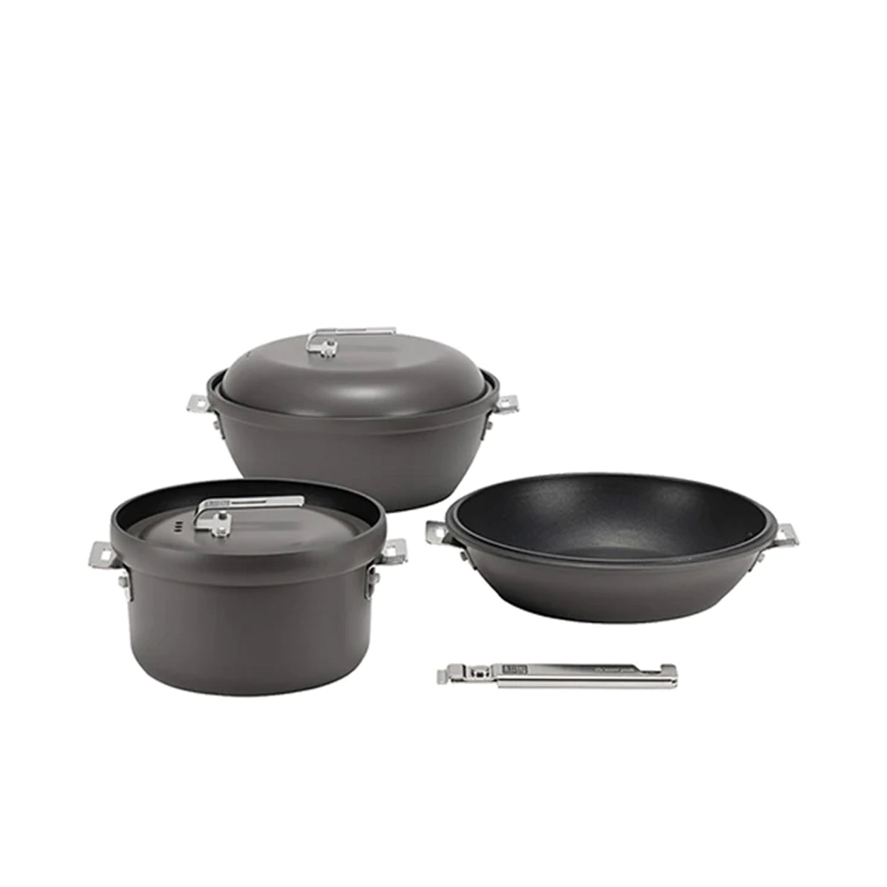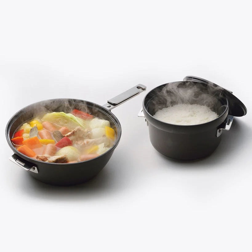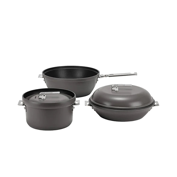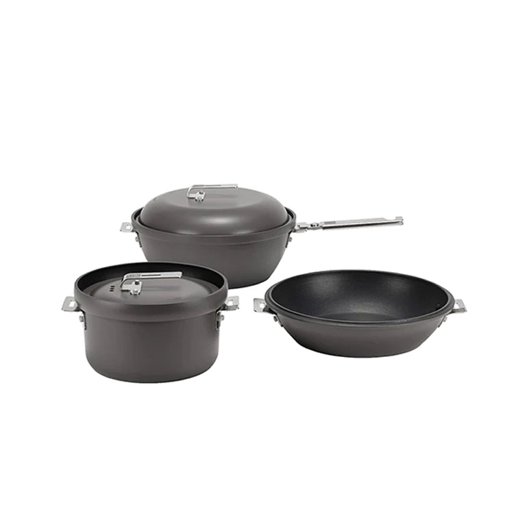 Made of non-stick aluminum, the Field Cooker Pro is a versatile cooking option. Use the Field Cooker Pro for frying, baking and stewing. The set includes a large pot, rice cooker and saute pan. Designed to be modular, the saute pan doubles as a lid for the pot. The Field Cooker Pro set also features foldable handles for easy storage. Pair the Field Cooker Pro with the Home and Camp Burner for a complete cooking set.
