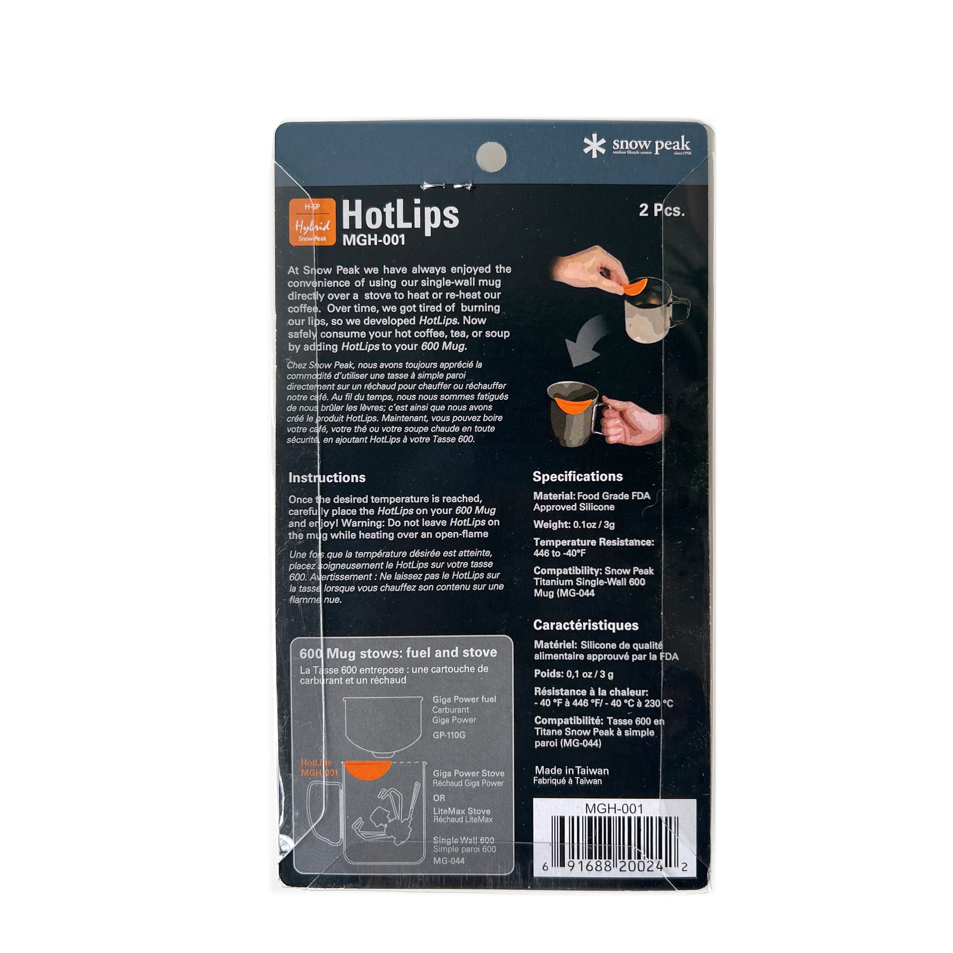 Designed in the USA and made of heat-safe silicone, the Hot Lips are a solution for drinking from hot single-wall titanium mugs. Simply place it on the edge of the mug for comfortable sipping. Set includes two units of Silicone Hot Lips. Please note: Hot Lips should be hand washed with detergent and air-dried. Pair the Hotlips 2 Piece Set with the Ti-Single colored cup.
