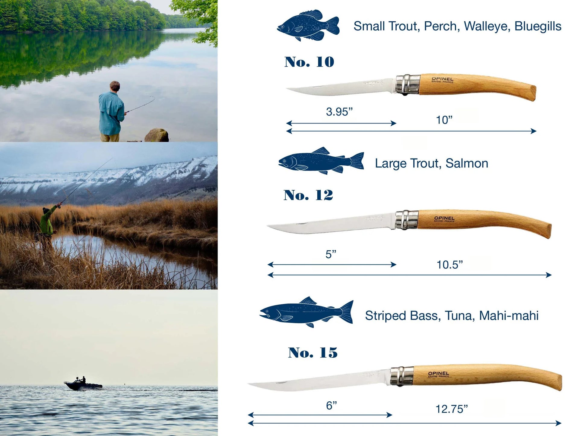 Choose from four different sizes ranging from No.08 - No.15. Having a knife long enough and flexible enough to fillet is key to harvesting the most from your catch. Still not sure about size? Check out our recent blog article that should help you make the right choice.