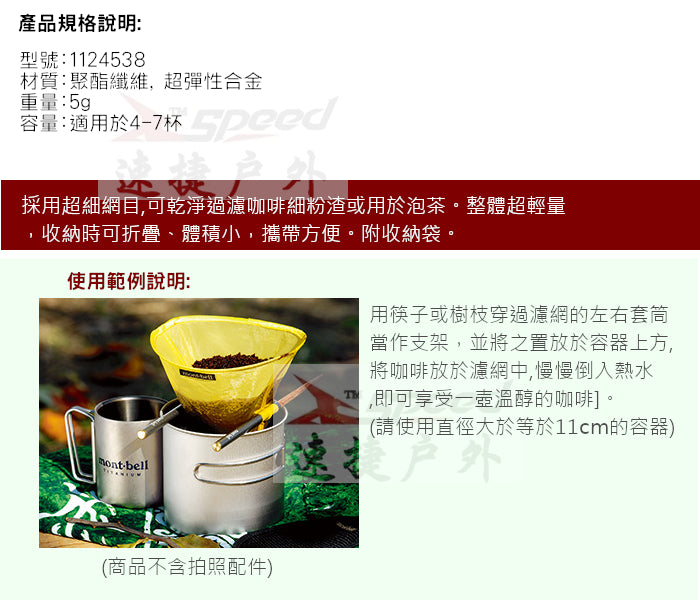 The Compact Dripper is a highly useful, packable coffee filter designed to utilise the Montbell Chopsticks, although a couple of twigs will equally do the job. An ecologically sound way to filter coffee and equally save your beans usually spent on paper filters.