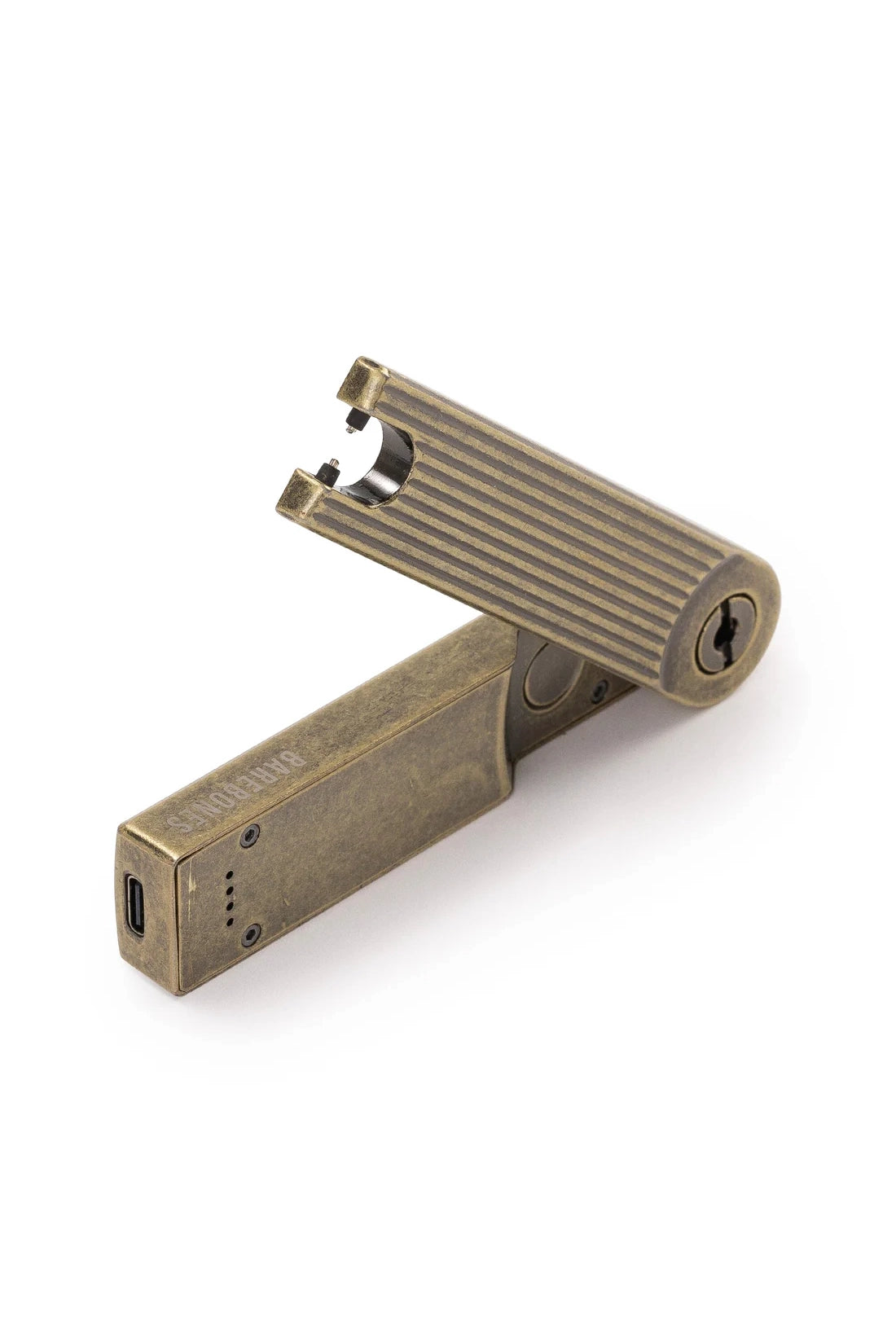 The Pivot Arc Lighter is a sleek, innovative reusable lighter that utilizes electric plasma technology to provide an ultra-reliable flame. With a pivoting arm, this lighter is designed for easy storage and handling, making it perfect for everyday use. Made with high-quality die-cast zinc parts and finished with a tumbled brass coating, the Pivot Arc Lighter is built to last, and the wind-proof design ensures use in all weather conditions. Powered by rechargeable lithium-ion batteries instead of butane, this modern lighter is an ideal alternative to single-use plastic lighters and a worthy collector's item.