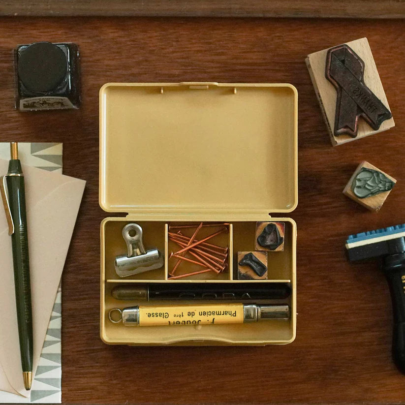 The front side has four compartments, perfect for using as a medicine or accessory case, or for organizing small items such as paperclips.