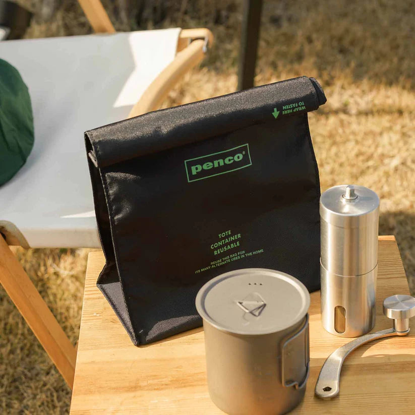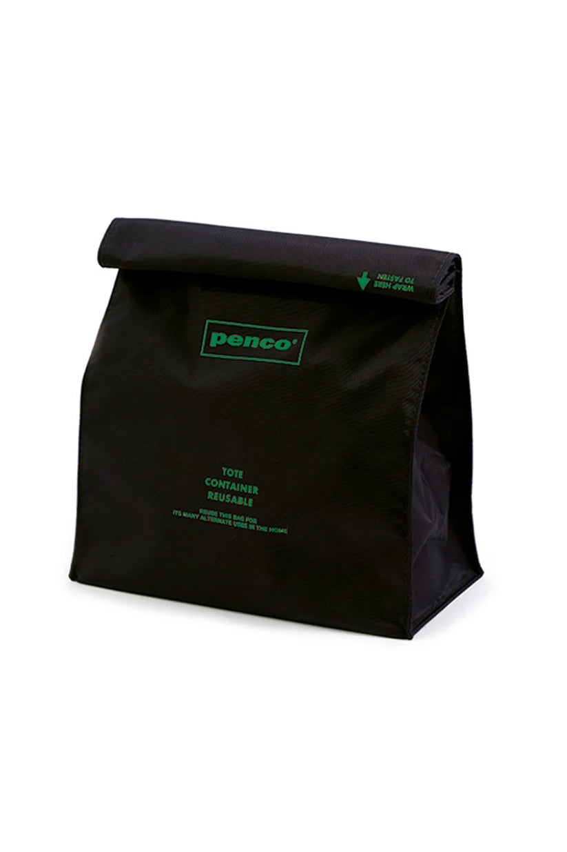 This is a "To-Go Sack" – A reusable roll-top pouch that emulates a brown paper bag in the original penco design. The Velcro pouch makes it easy to take out the contents, and can be used as a pouch for outdoor activities and sports.