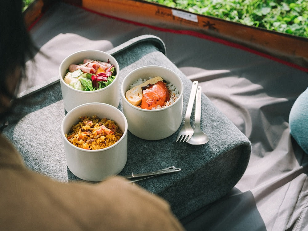 The Tobachi 3 in White is an insulated system lunchbox that has multiple meal components. Use the Tobachi 3 in White as a lunchbox or use it at a picnic. It features a set of three Tobachi Medium in White and a case. Each case can fit up to six Tobachi Small and three Tobachi M.