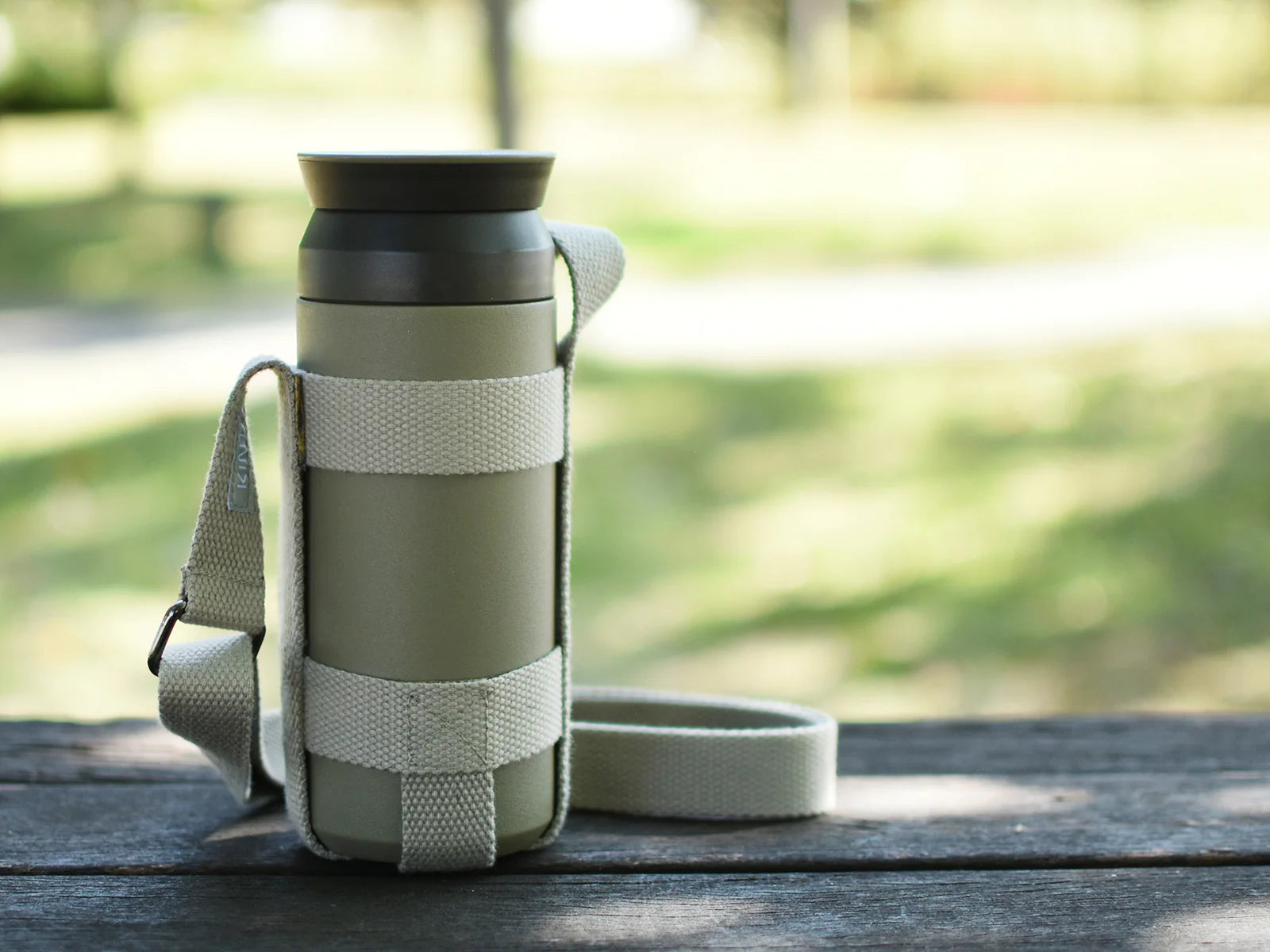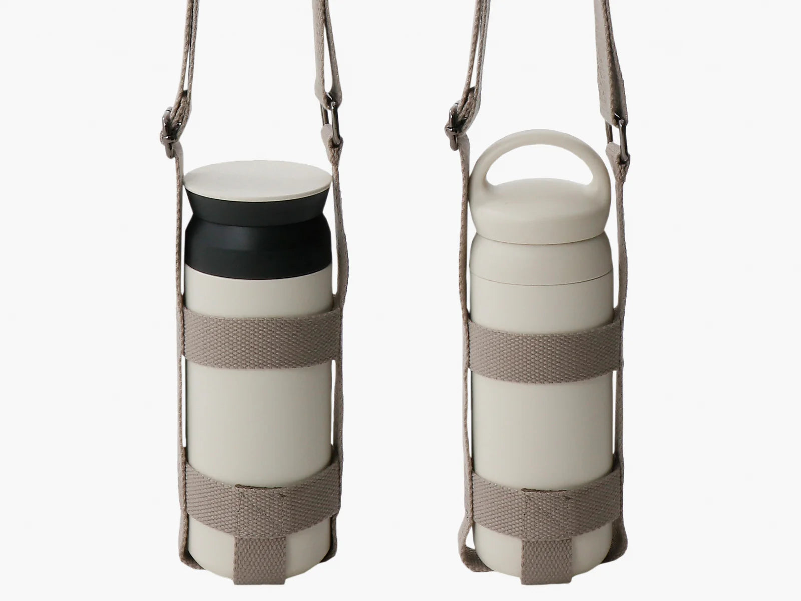 A carry strap for KINTO tumblers. Ideal for hands-free walks and outdoor activities. The strap is adjustable and can be used by kids and adults. Two basic color variations are available: black and beige to match any KINTO tumblers.